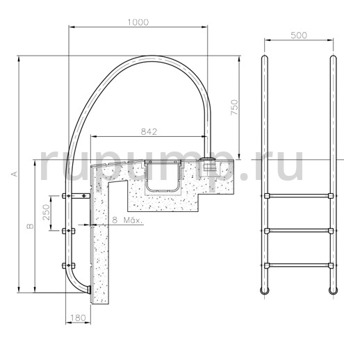 Лестница для переливного бассейна AstralPool Overflow Luxe отличается изменяемым радиусом кривой в секции захвата, что придает ей более современный и привлекательный внешний вид. Поручни и ступеньки изготовлены из нержавеющей стали марки AISI-316.
